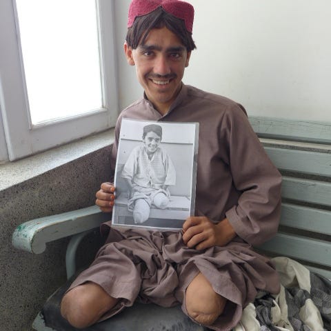 I also realized I forgot to add the photo of the Afghan kid who smiled while getting his legs amputated several years later so here it is now.